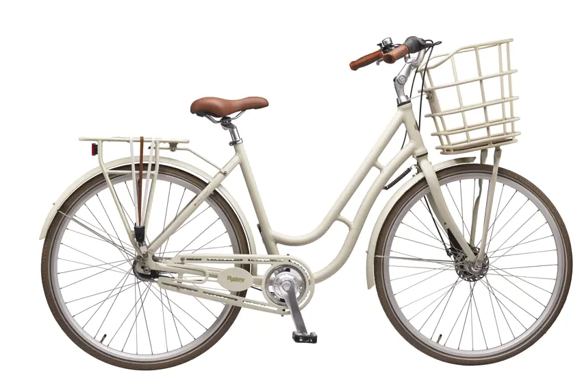 Fine detaljer som designskærm, bagagestropper og farvet kurv fuldender cyklens look og gør samtidig turen mere bekvem.